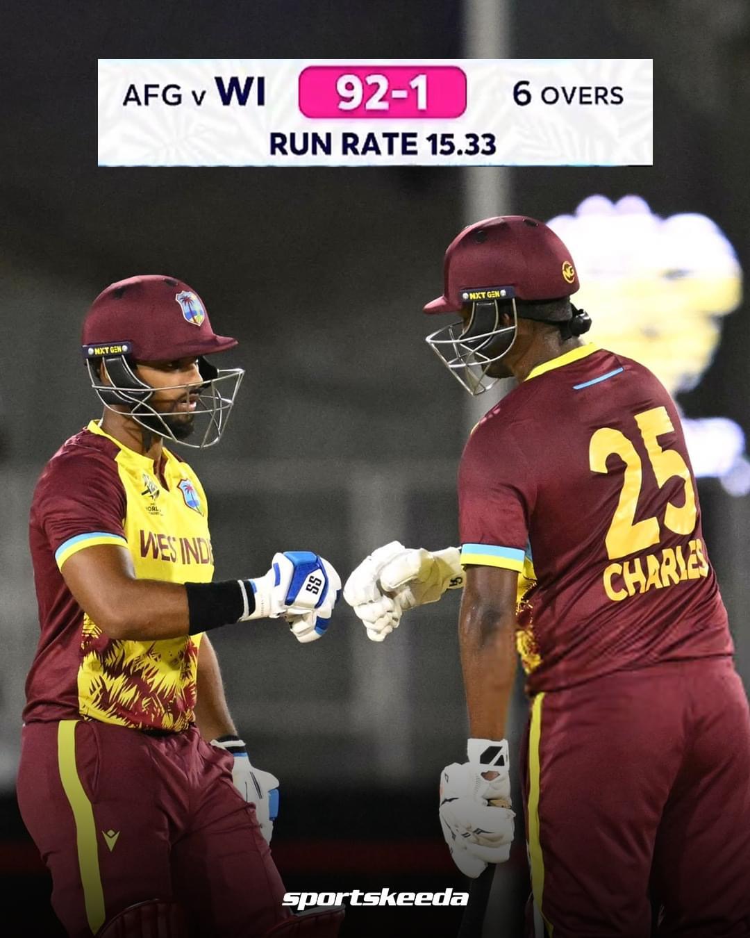 ஆனால், வெஸ்ட் இண்டீஸ் அணி ஆப்கானிஸ்தான் பந்துவீச்சை துவம்சம் செய்து பந்துவீச்சாளர்களை பதற வைத்தது. குறிப்பாக நிக்கோலஸ் பூரன் 98 ரன்கள் சேர்த்தார். இந்த உலகக் கோப்பையில் இதற்கு முன் ஆப்கானிஸ்தான் அணிக்கு எதிராக ஒரு அணி எடுத்த அதிகபட்ச ஸ்கோரான 95 ரன்களை தாண்டி தனி ஒரு வீரரே அதிக ஸ்கோரை எடுத்து அதிர்ச்சி அளித்தார்.