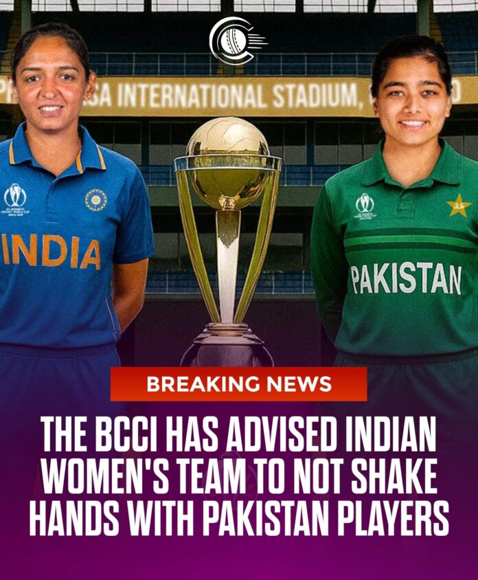 ஞாயிற்றுக்கிழமை கொழும்பில் நடைபெறும் ஐ.சி.சி மகளிர் உலகக் கோப்பை போட்டியில் பாகிஸ்தான் வீராங்கனைகளுடன் கைகுலுக்க வேண்டாம் என்று இந்திய மகளிர் அணிக்கு BCCI அறிவுறுத்தியுள்ளது.