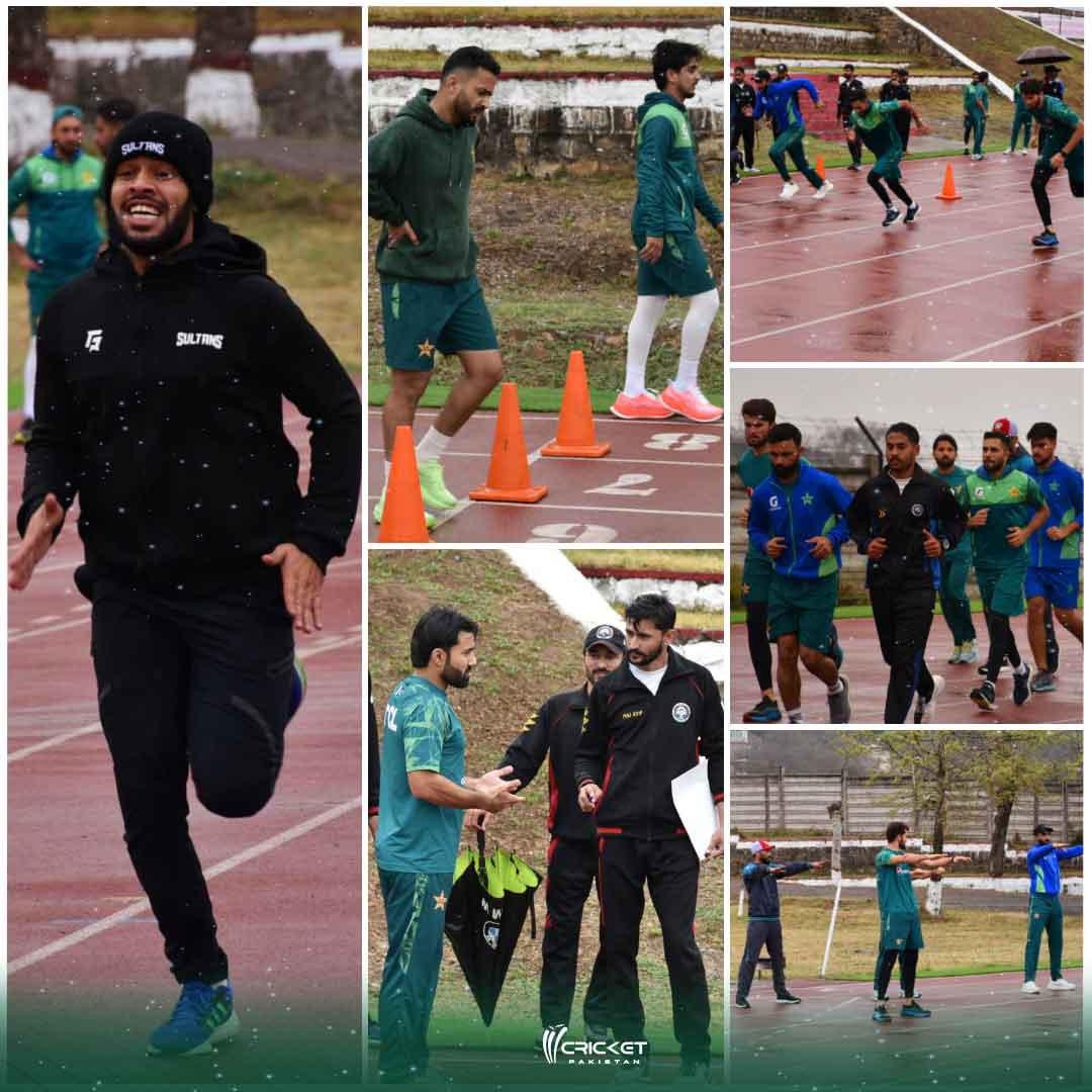 அபோதாபாத்தில் உள்ள காகுல் அகாடமியில் இரண்டாவது நாள் பயிற்சியின் போது பாகிஸ்தான் கிரிக்கெட் வீரர்கள் உடற்தகுதி மதிப்பீட்டை மேற்கொண்டனர்.